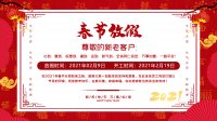 南宫NG电子2021年放假时间安排: (1) 2 月 9 日至 2 月 18 日放假,共计 10 天。2月19日开始正常上班。 (2) 2 月 18 日(年初七)安排部分业务、跟单、库房人员值班; (3) 2 月 7 日、2 月 20 日为...